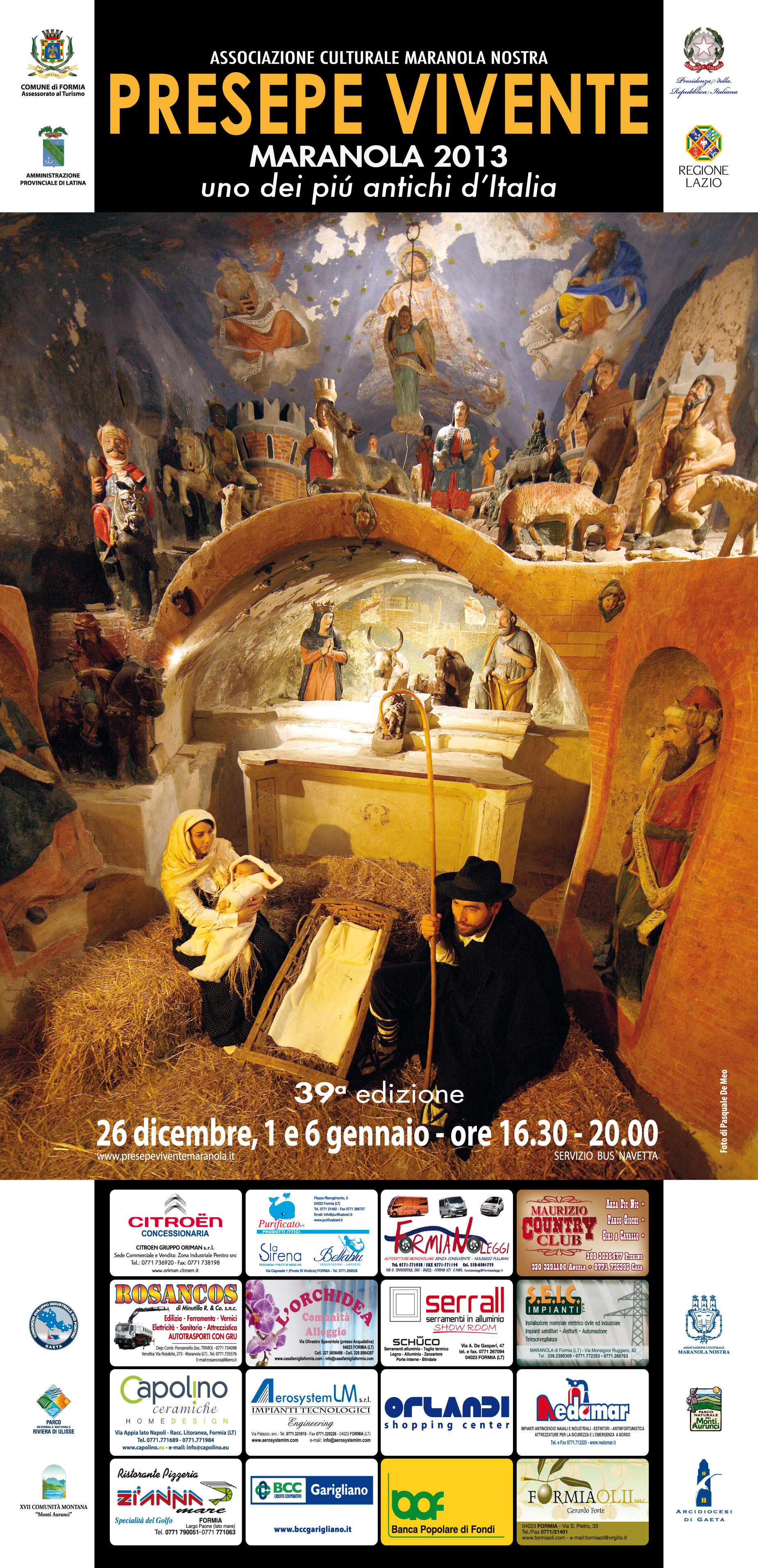 Da sottolineare, infine, che, contestualmente alla rappresentazione della Sacra Famiglia e della Natività, avrà luogo il 3° Concorso fotografico su “Il Presepe vivente di Maranola” sui temi, appunto della “Natività” e “Personaggi e mestieri del Presepe vivente”. Il termine per la presentazione delle opere scadrà il 31 gennaio 2014.