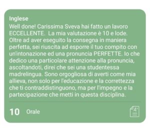 Il Giudizio su questa esposizione di Sveva, della sua Prof. di Inglese: